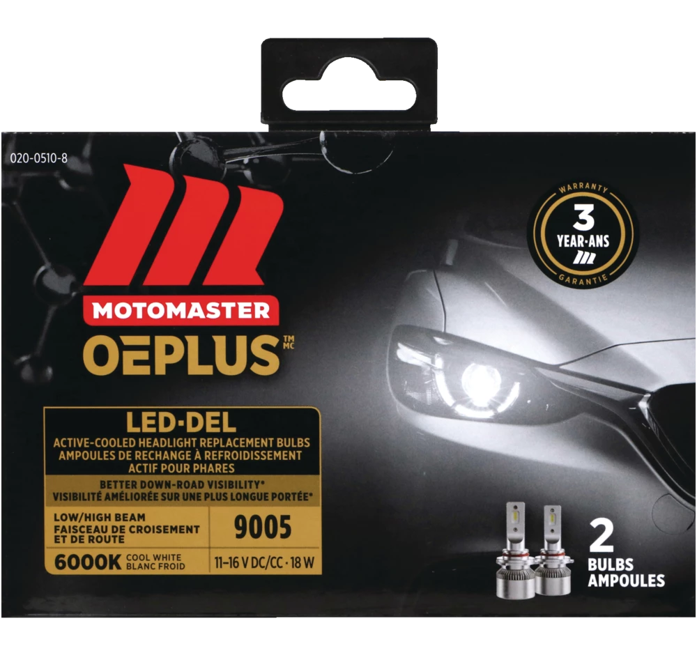 - MotoMaster 9005 OEPLUS® 6000K LED Light Bulbs have a superior cool-white light for better clarity