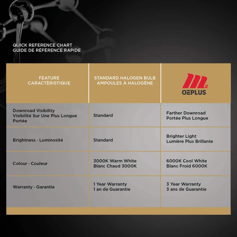 - MotoMaster H9 OEPLUS® 6000K LED Light Bulbs have a superior cool-white light for better clarity
