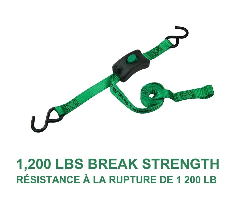 - MotoMaster Smart Cam Buckle Tie Down has a 1,200 lb (544.3 kg) break strength