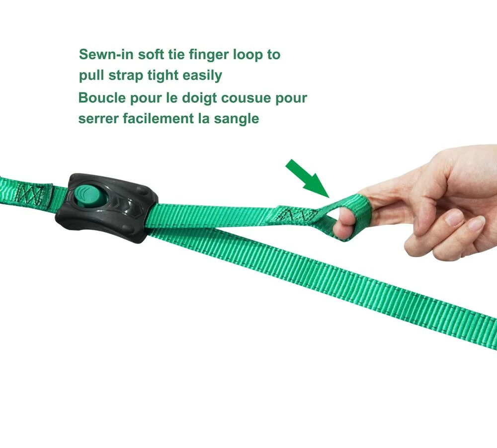 - Sewn-in soft tie finger loop to pull strap tight easily