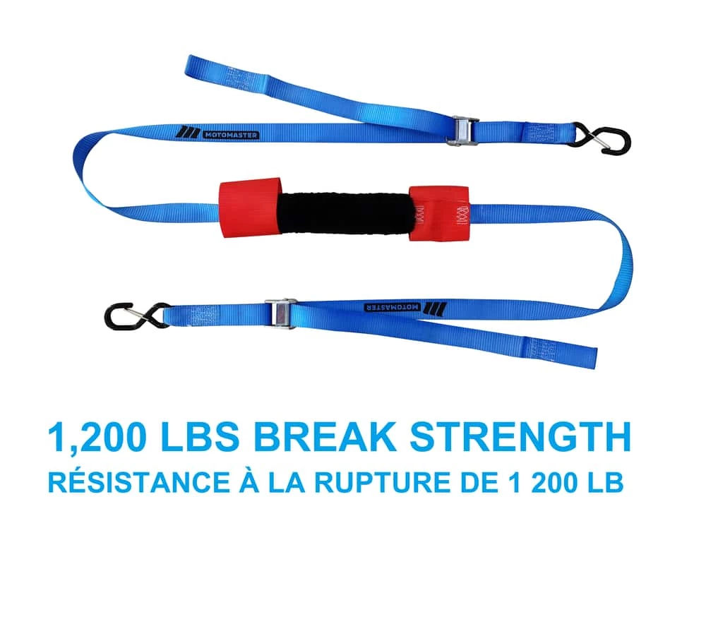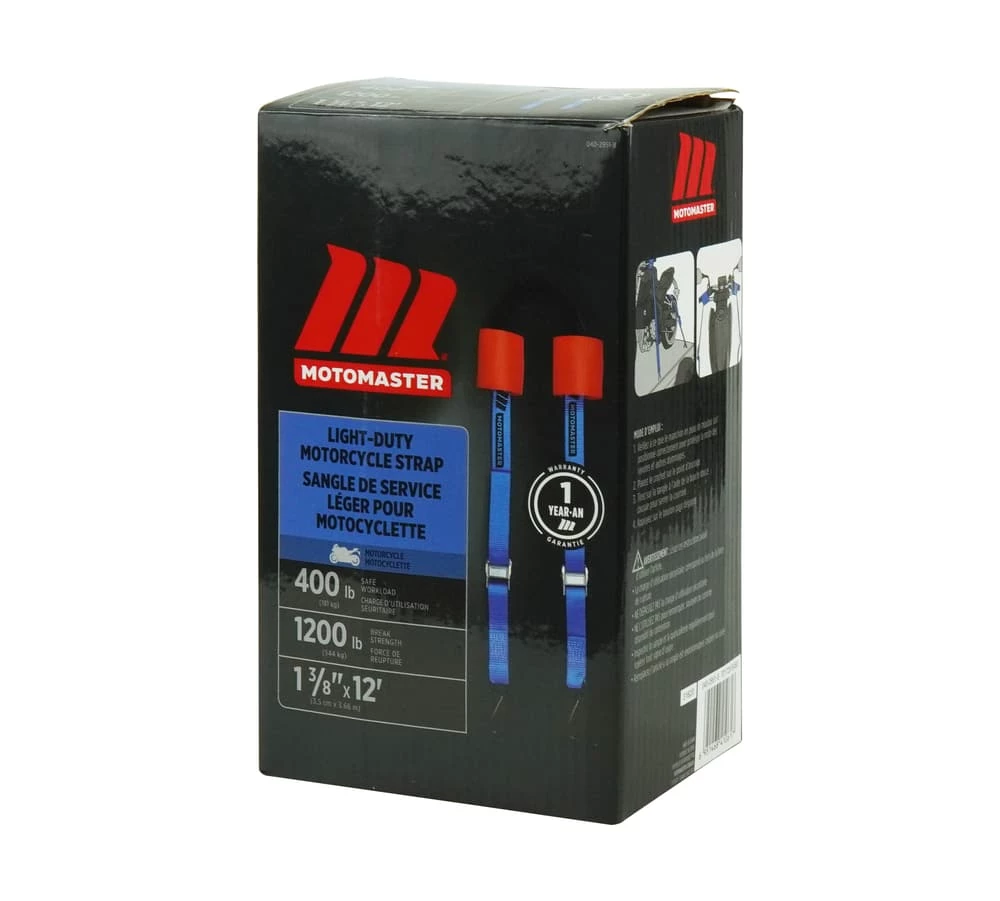 - MotoMaster 1,200-lb Motorcycle Tie Down Strap secures motorcycles and ATVs during transport