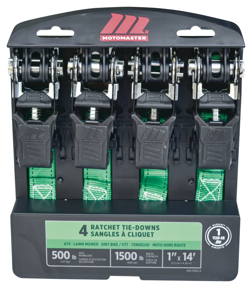 - Padded Ratchet Tie Down Straps feature a break strength of 1,500 lbs (680 kg)