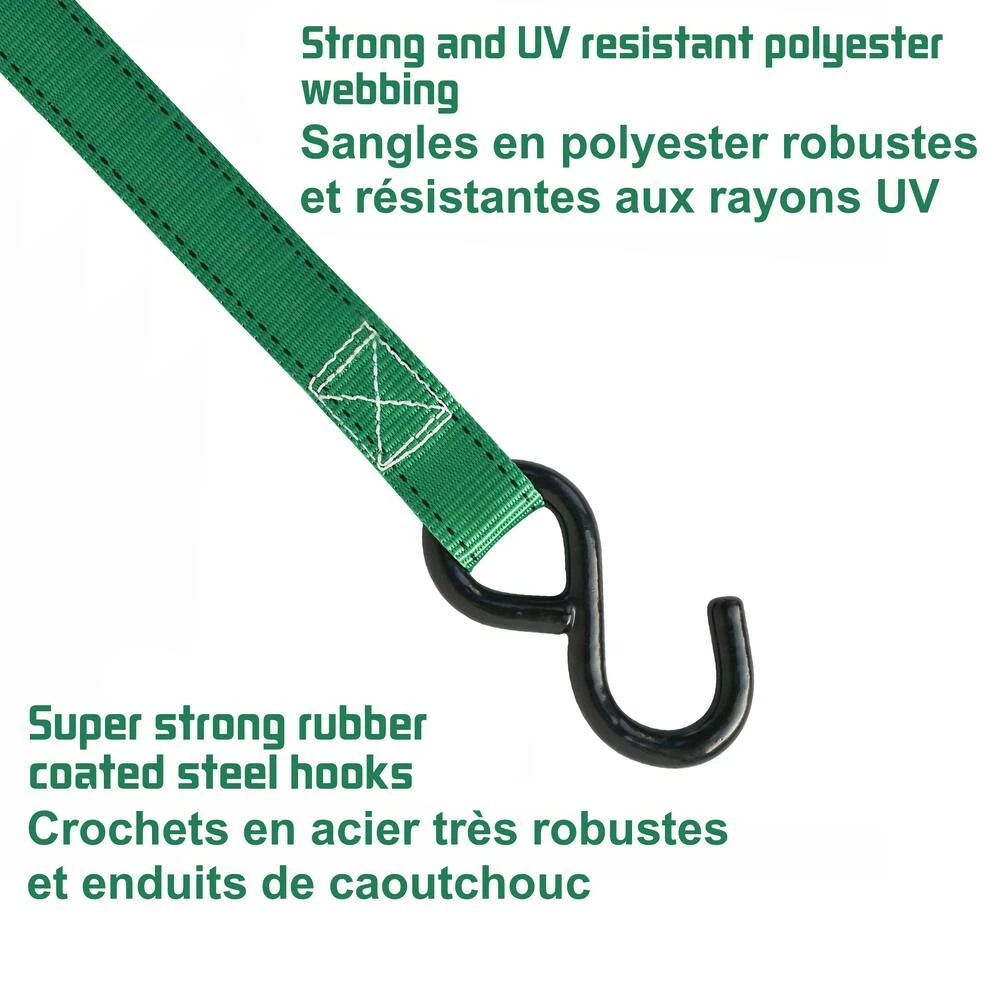 - The Standard Duty Ratchet Tie Downs features a 680 kg (1,500 lbs) breaking strength