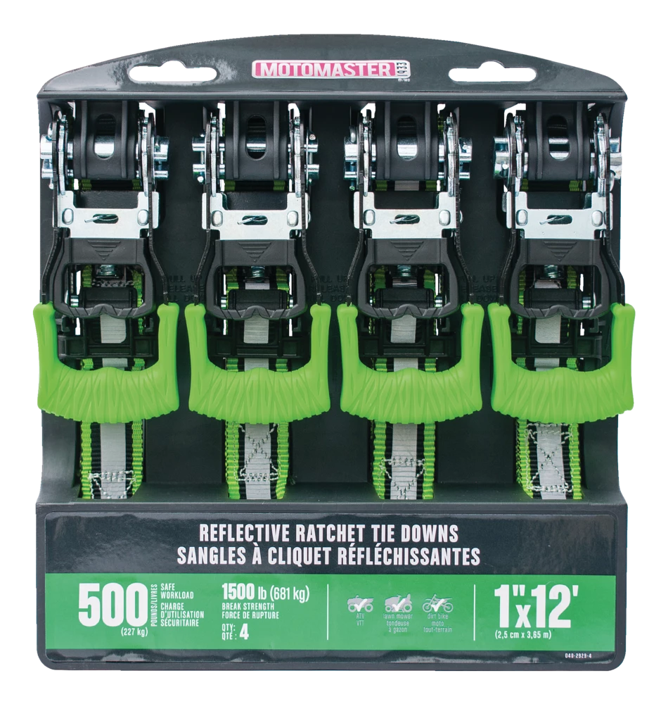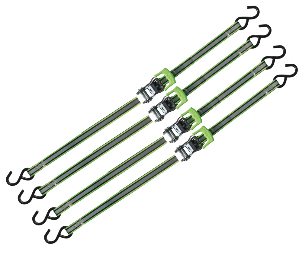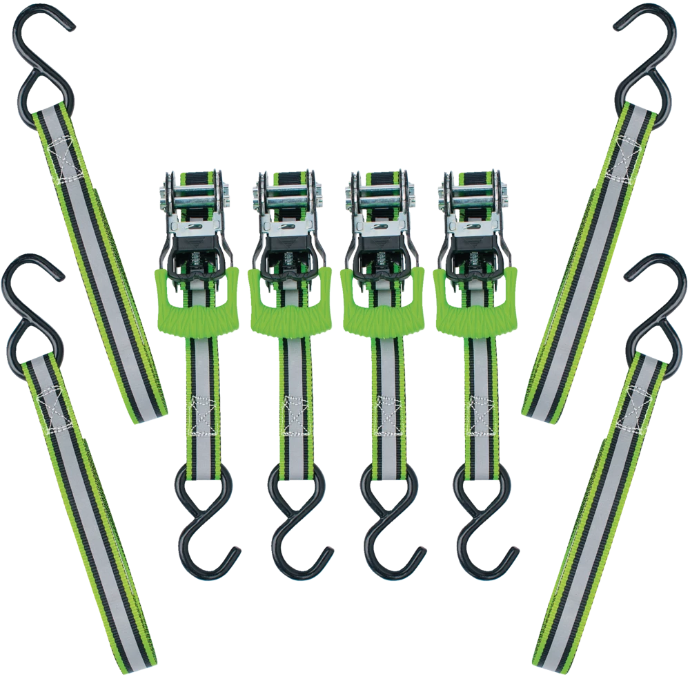 - Reflective Strap Ratchet Tie Downs is constructed of reflective polyester webbing for greater visibility in the dark