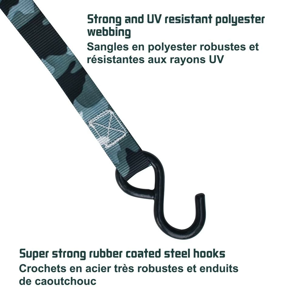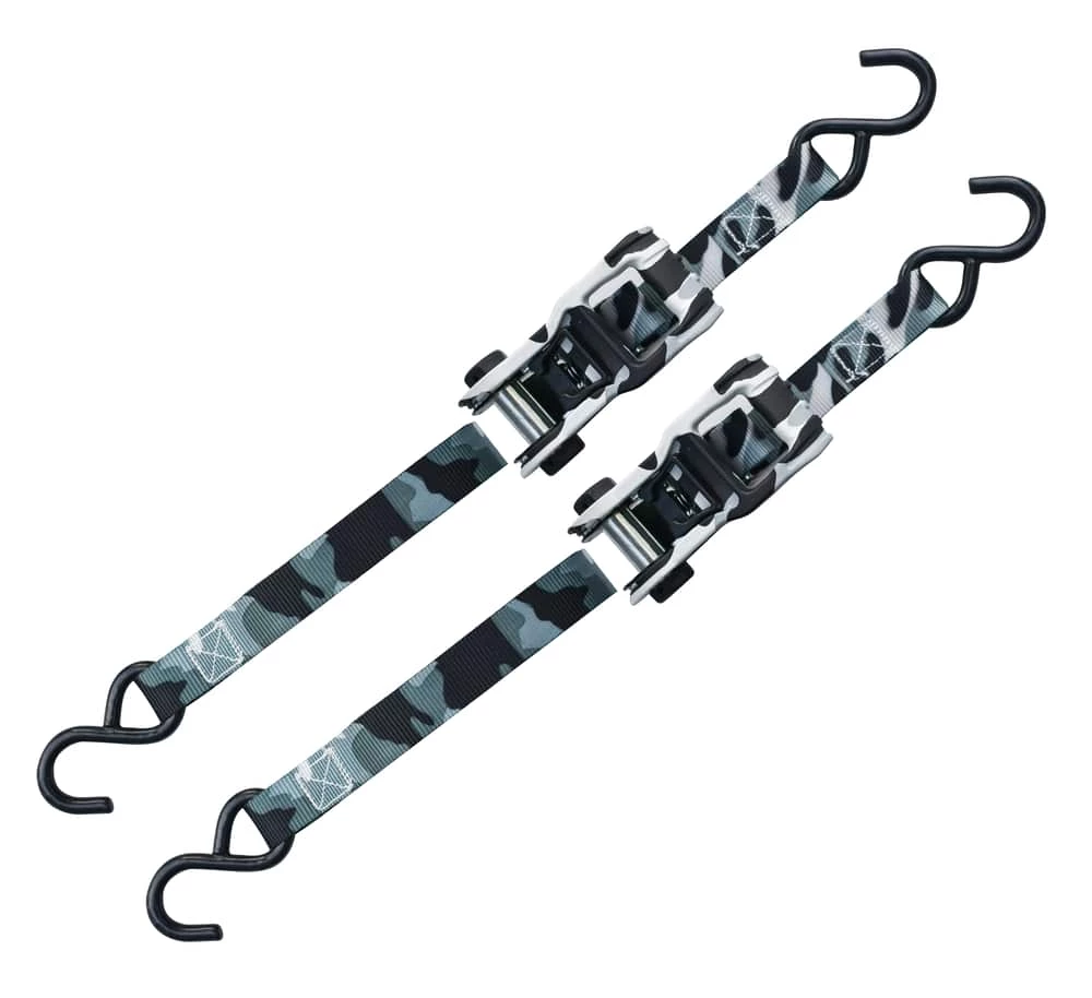 - MotoMaster Retractable Camo Tie Downs are perfect for securing heavy loads