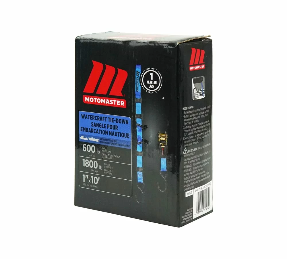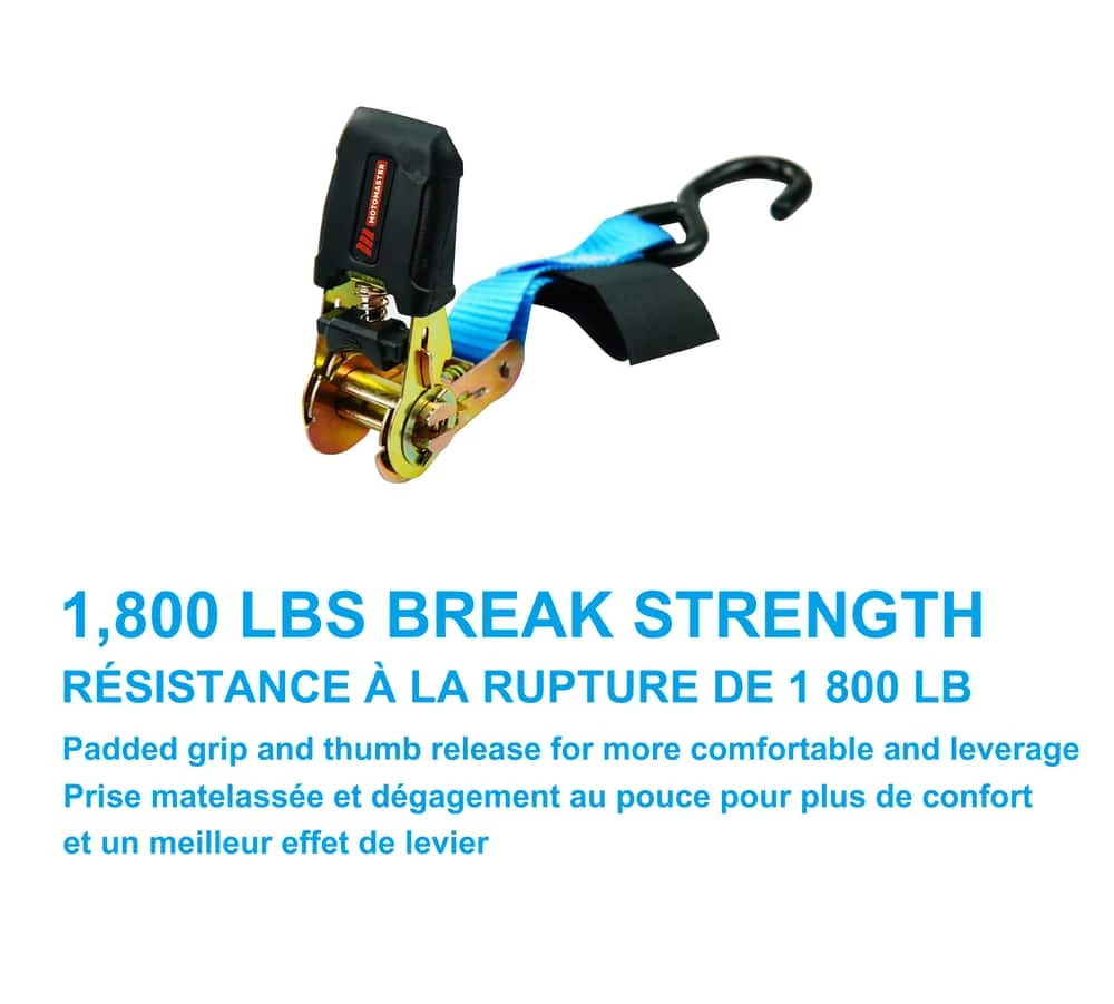 - MotoMaster Ratchet Tie Down Strap has a 1,800 lb (816.4 kg) break strength