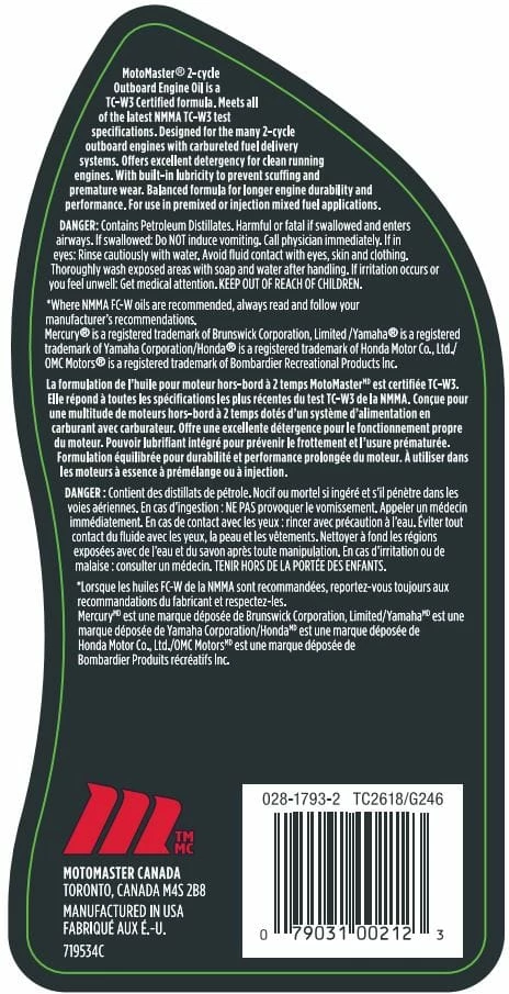- MotoMaster 2-Cycle Outboard Engine Oil is a marine oil designed for pre-mix and injection engines