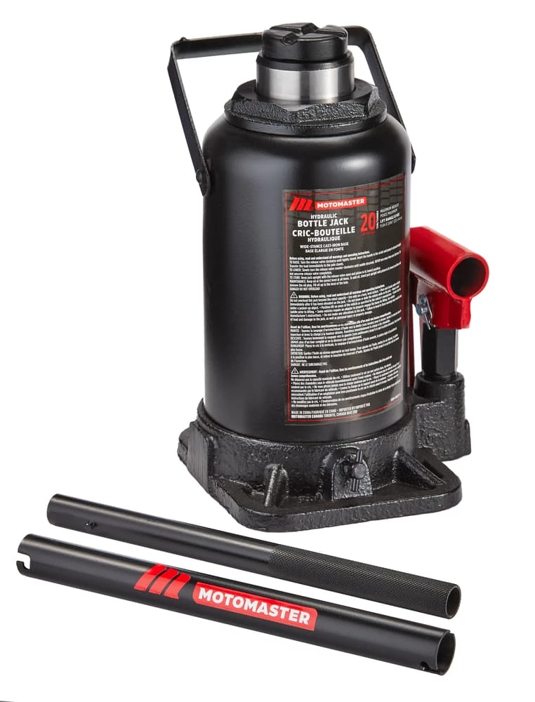 - MotoMaster 20-Ton Hydraulic Bottle Jack offers strength and durability for a variety of automotive, construction, industrial and farming needs