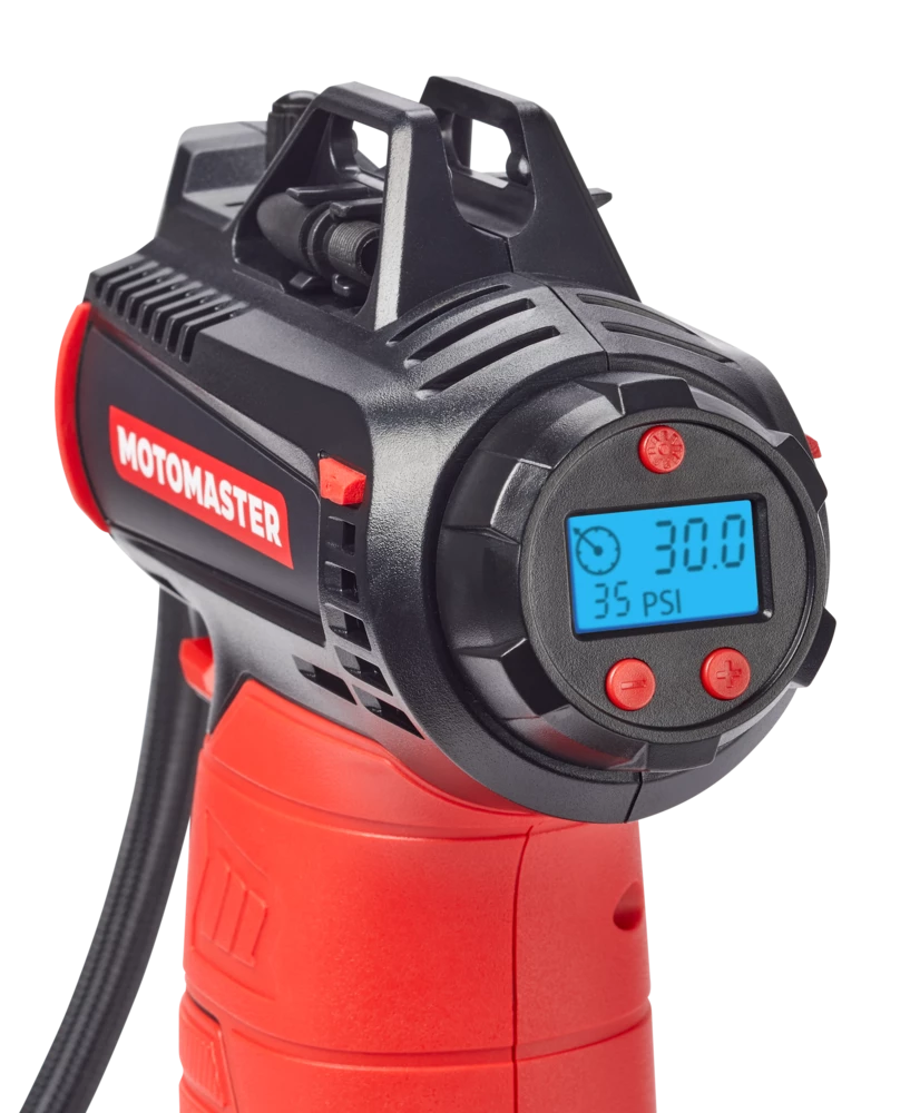 - MotoMaster 20V Digital Portable Tire Inflator provides high pressure inflation for cars, SUV/Vans, motorcycles, bicycle tires and sports equipment/inflatable toys