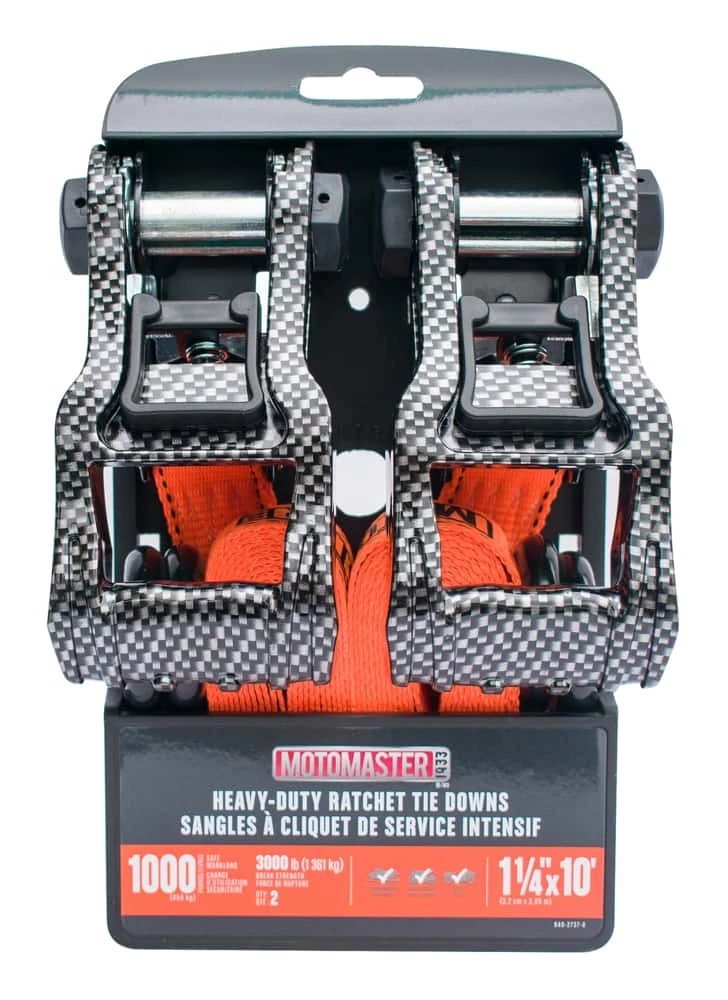 - Heavy Duty Carbon Ratchet features 1361 kg (3,000 lbs) breaking strength
