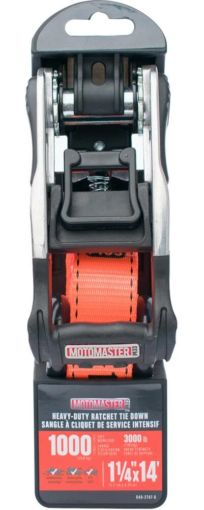 - Heavy Duty Ratchet Tie Down features a 1361 kg (3,000 lbs) break strength