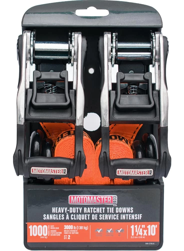 - Heavy Duty Ratchet Tie Downs features a 1361 kg (3,000 lbs) break strength