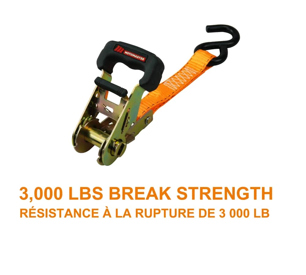 - Padded Handle Ratchet Tie Down Straps have a 3,000 lb (1,361 kg) break strength