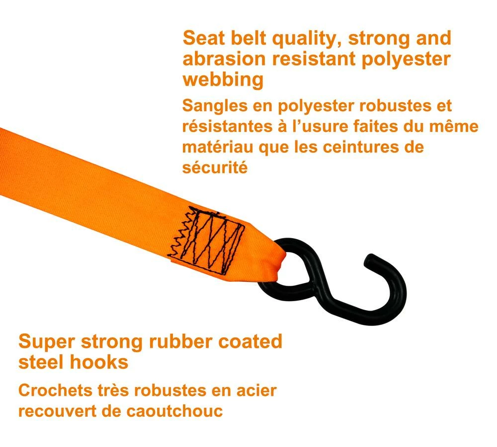 - Quick and easy to use – No feeding straps in, no tying off ends or removing webbing from ratchet