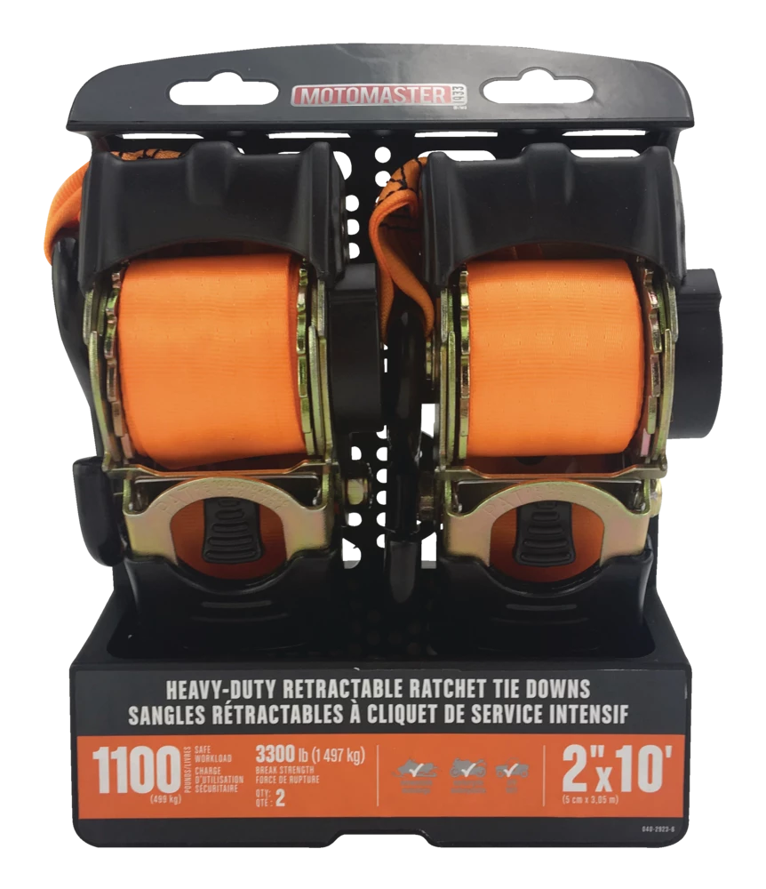 - Retractable Tie Downs features 3,300-lb break strength and 1,100-lb safe work load