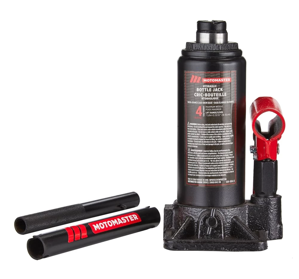 - MotoMaster 4-Ton Hydraulic Bottle Jack offers strength and durability for a variety of automotive, construction, industrial and farming needs