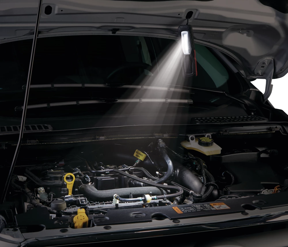 - Light up your work area with the MotoMaster 400 Lumen Rechargeable COB Worklight with Adjustable Stand