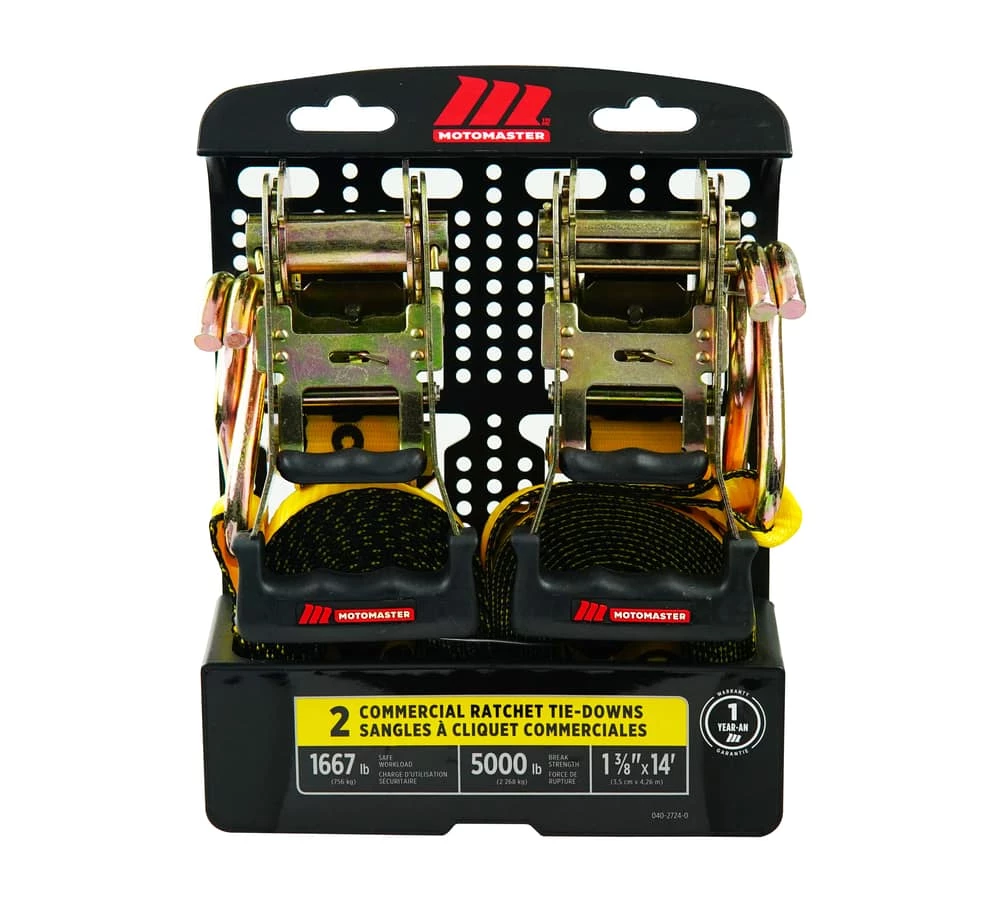 - Ratchet Tie Downs features 2268 kg (5,000 lb) breaking strength