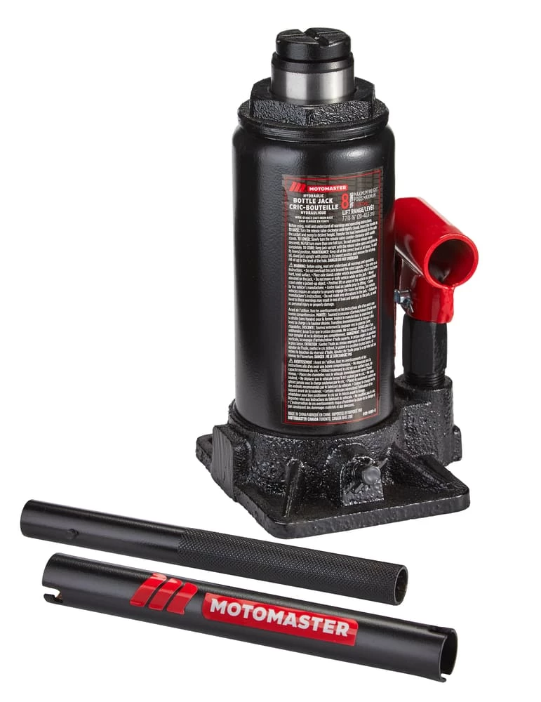 - MotoMaster 8-Ton Hydraulic Bottle Jack offers strength and durability for a variety of automotive, construction, industrial and farming needs