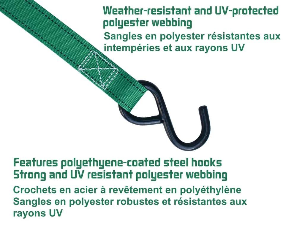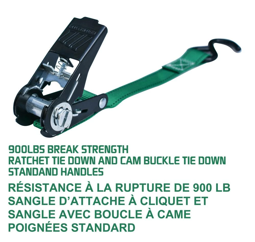 - Standard Non-Padded Ratchet/Cambuckle Tie Downs Combo have a 408 kg (900 lbs) break strength