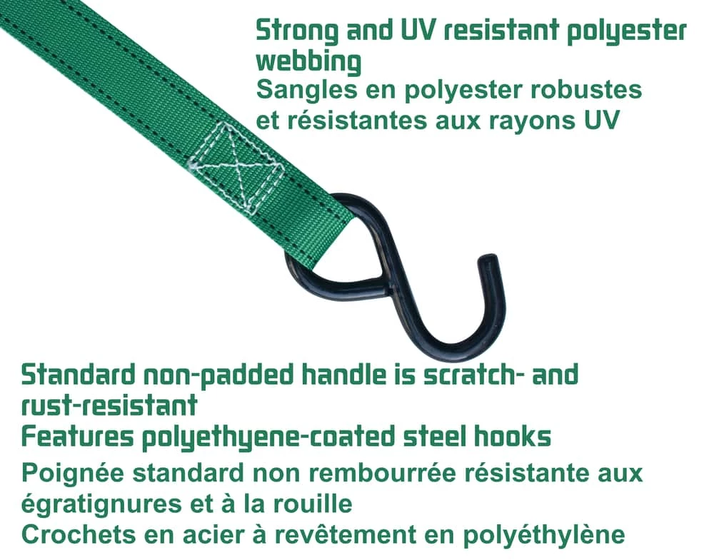 - Non-Padded Ratchet Tie Downs feature a 900 lbs (408 kg) break strength