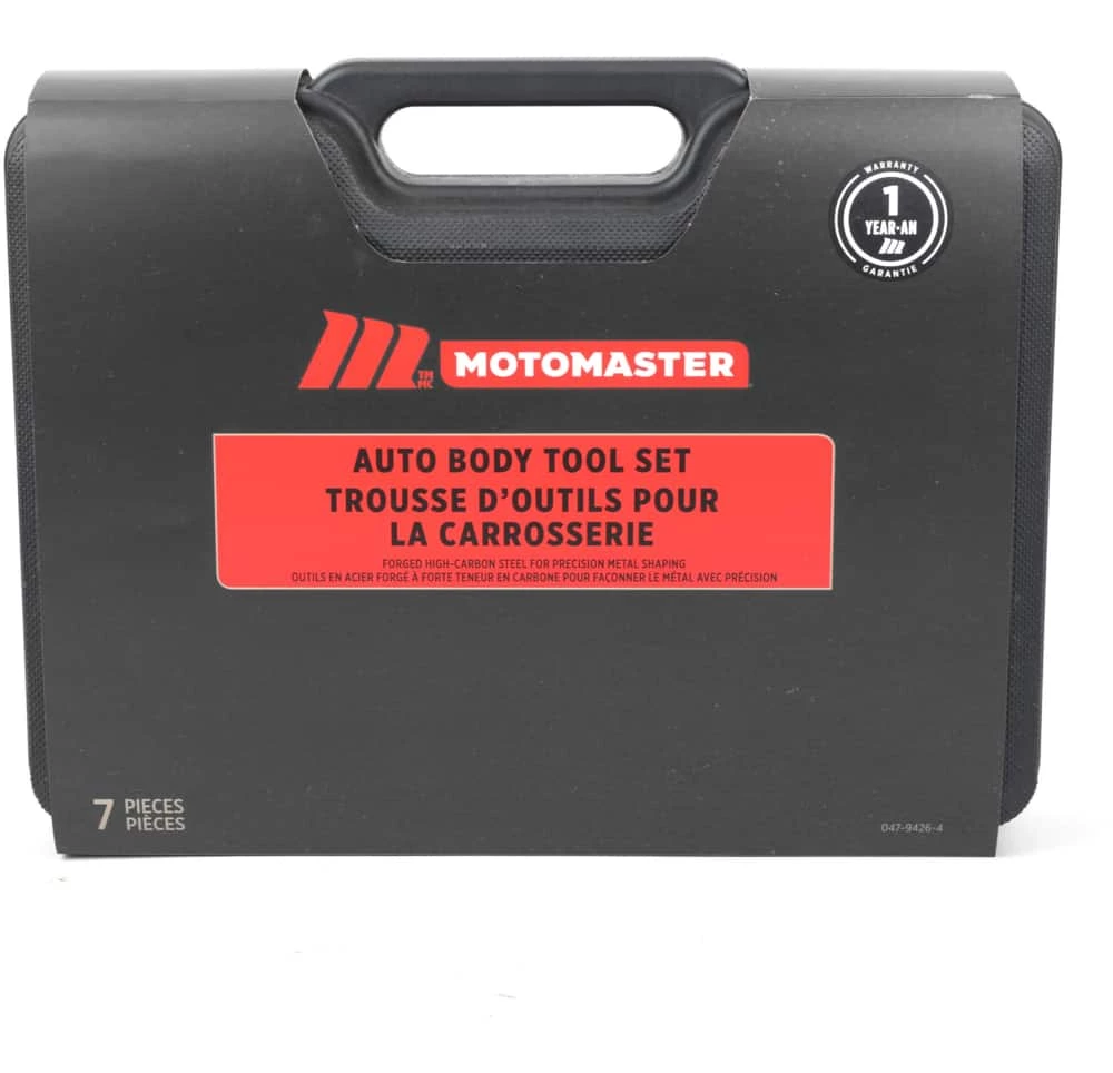 - MotoMaster Auto Body Tool Set includes a set of tools for DIY auto repairs