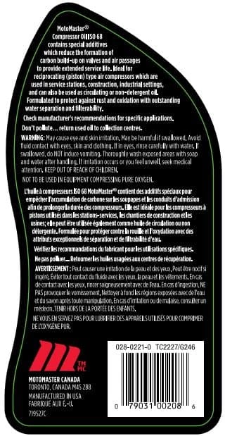 - MotoMaster Compressor Oil for industrial type air compressors and vacuum pumps