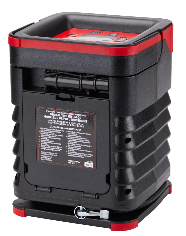 The MotoMaster Hi-Flow Inflator is a precision inflator that has a unique ability to inflate both high pressure and high volume objects meeting any of your desired inflation needs. This product features a revolutionary louvered design to increase airflow and a large square base that increases stability. in addition to a large, digital backlight display that provides real time data and will shut off when your desired pressure is reached.