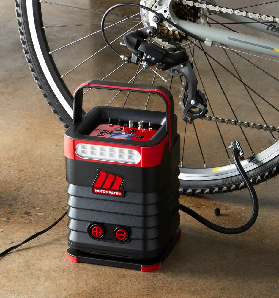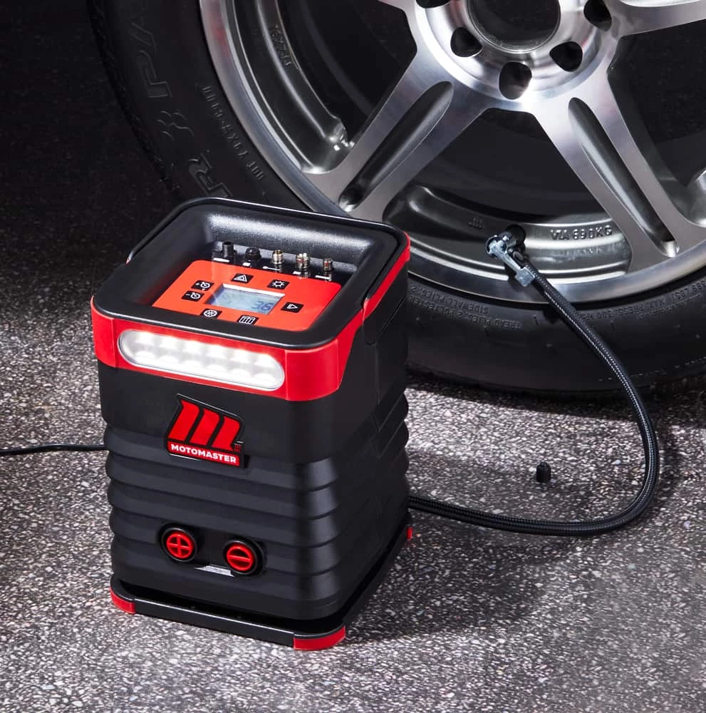 - MotoMaster 12V Digital Hi-Flow Tire Inflator provides dual-purpose high pressure inflation for cars, SUV/Vans, motorcycles, bicycle tires and sports equipment or high volume items requiring large air intake like air mattresses and much more