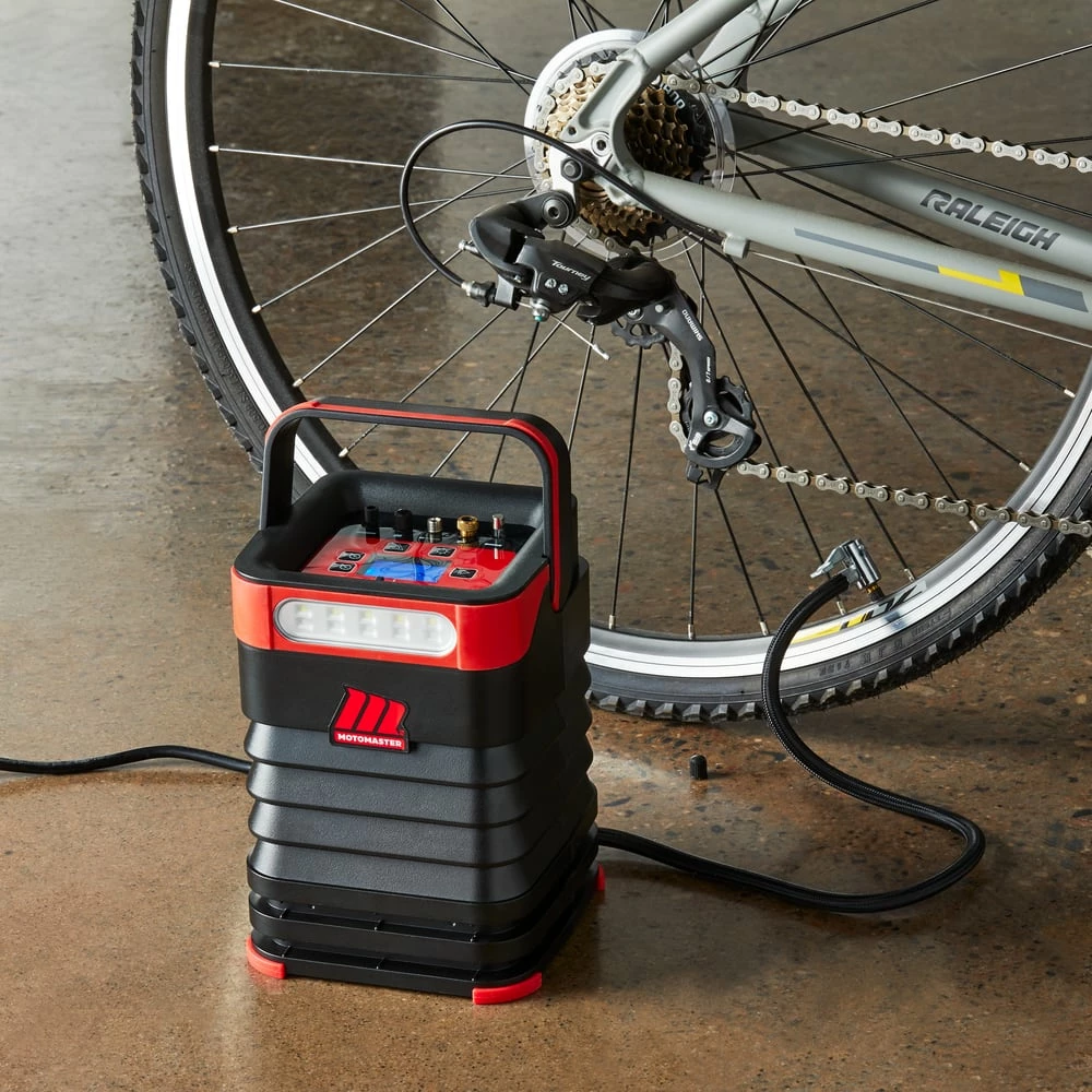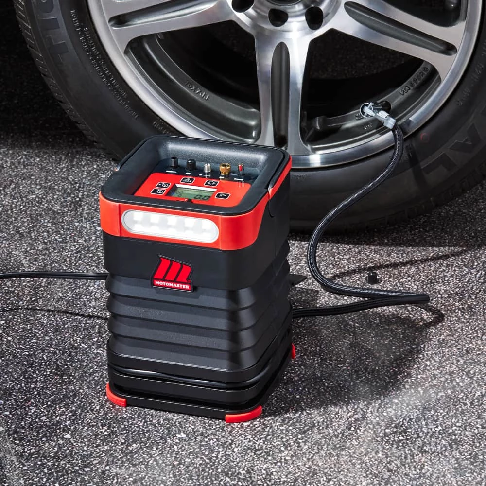 - MotoMaster 12V Digital Road & Home Tire Inflator is a versatile inflator that has the ability to inflate high pressure items from vehicle (DC) and home (AC) power outlets