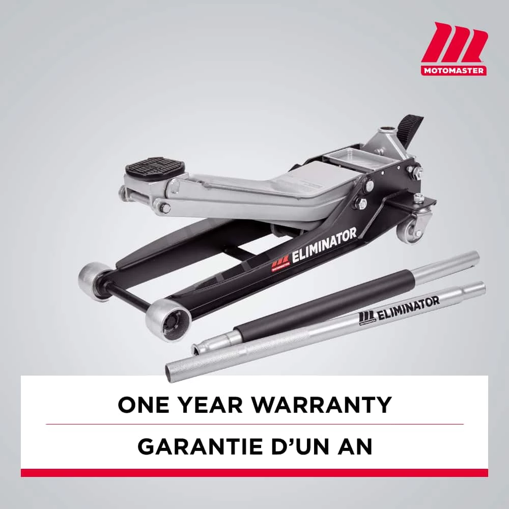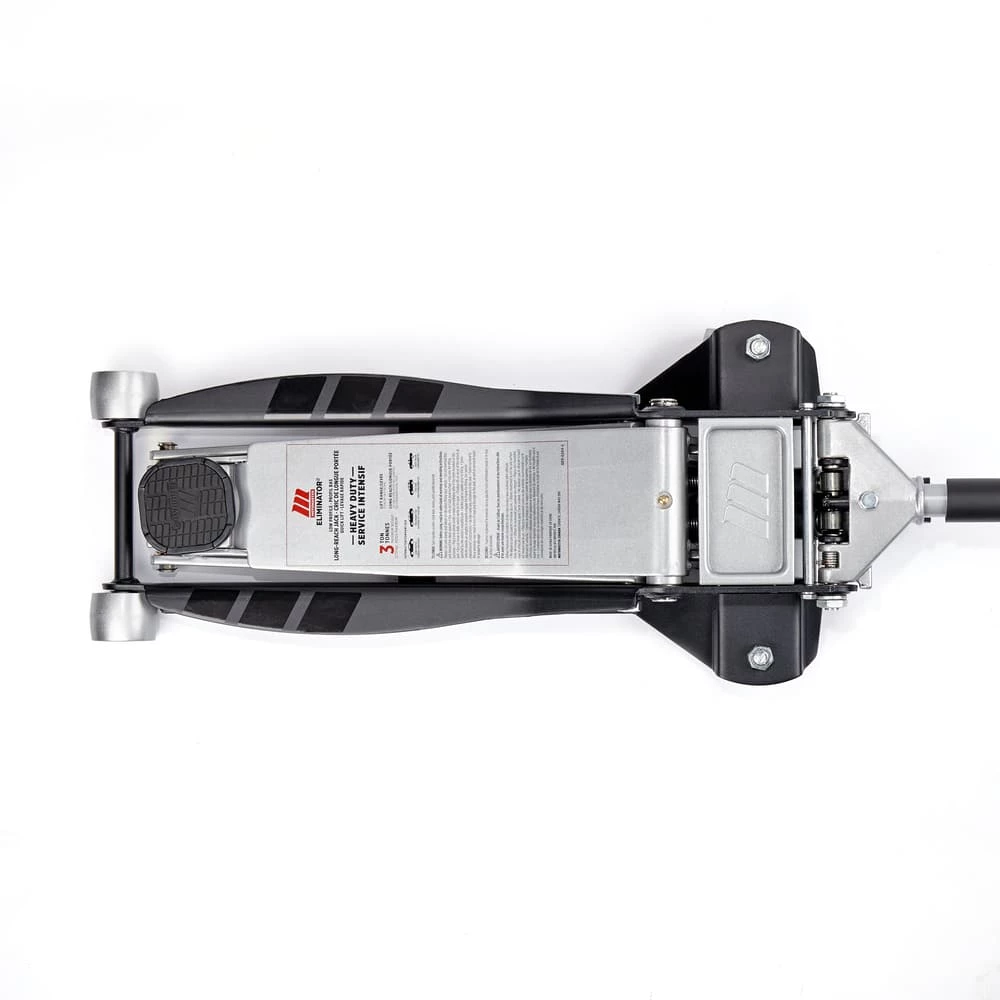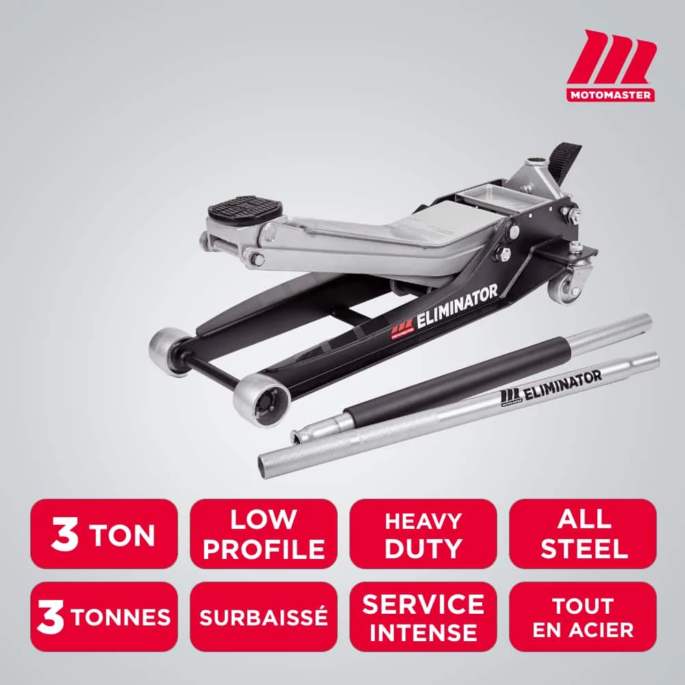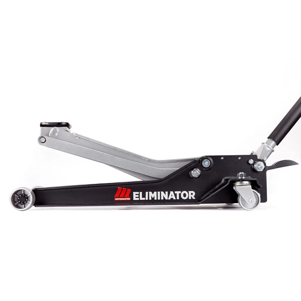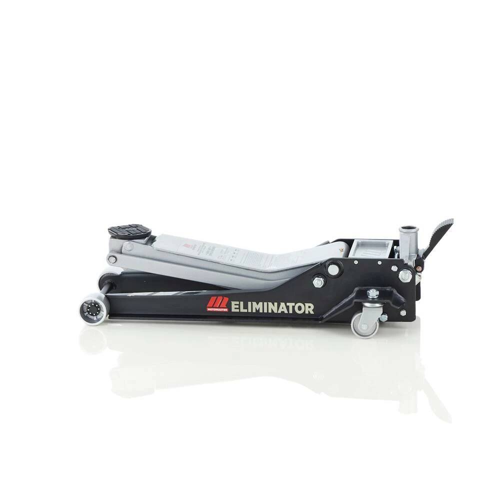 - MotoMaster Eliminator 3-Ton Heavy-Duty Low Profile Long Reach Garage Jack features a low profile and extra-long 19.5″ (50 cm) lift arm that is able to access hard-to-reach jack points with ease