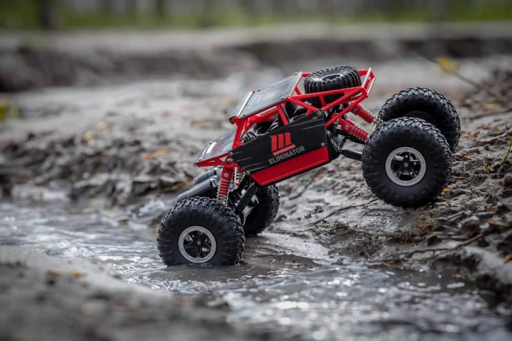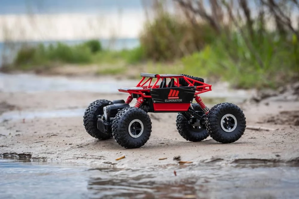 The all new MotorMaster Eliminator Rock Racer has been designed with over sized wheels along with Long Travel Suspension. It can easily navigate through rough terrain. It’s twin motor setup, delivers torque to the front and rear axles – all controlled by you with the included 2.4 Ghz Controller! MotorMaster Eliminator Rock Racer has a Heavy Duty Roll Cage that protects components in case of a roll over. Head out on your next adventure Off-Road with the MotoMaster Eliminator Rock Racer.