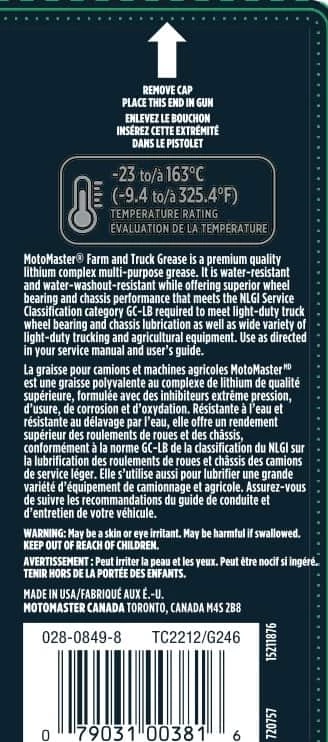 - MotoMaster Farm and Truck Grease is a premium quality lithium complex multi-purpose grease
