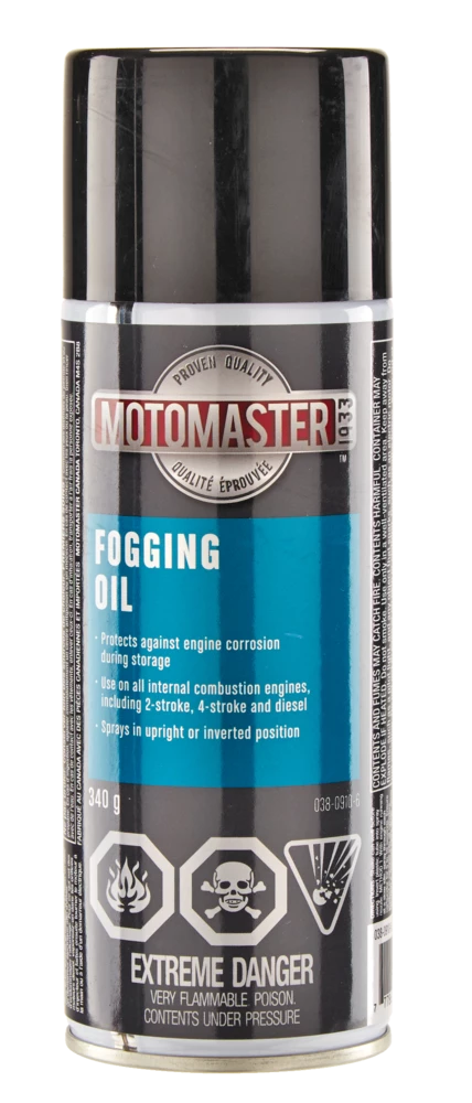 - MotoMaster Fogging Oil protects against engine corrosion during storage