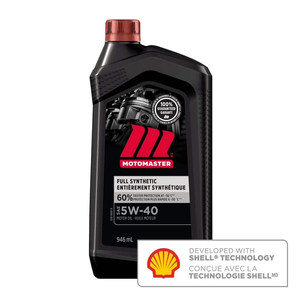 - MotoMaster 5W40 Synthetic Engine Oil provides lubrication to vital engine parts quickly to help reduce engine wear due to friction during cold weather engine start-ups