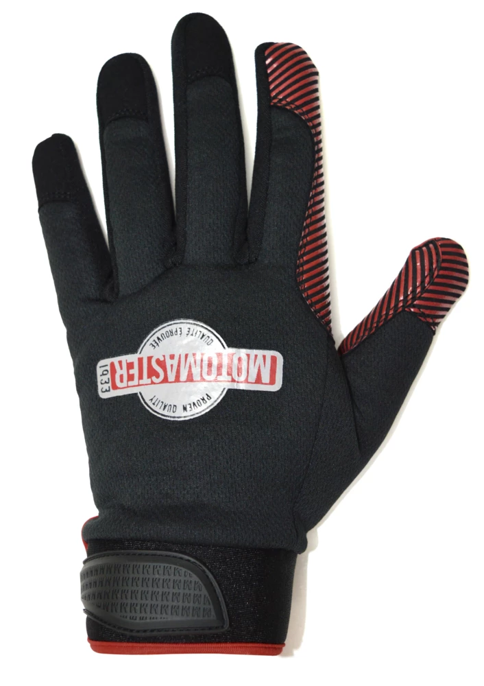 - MotoMaster Grip Gloves features a full silicone palm which provide superior grip and breathability