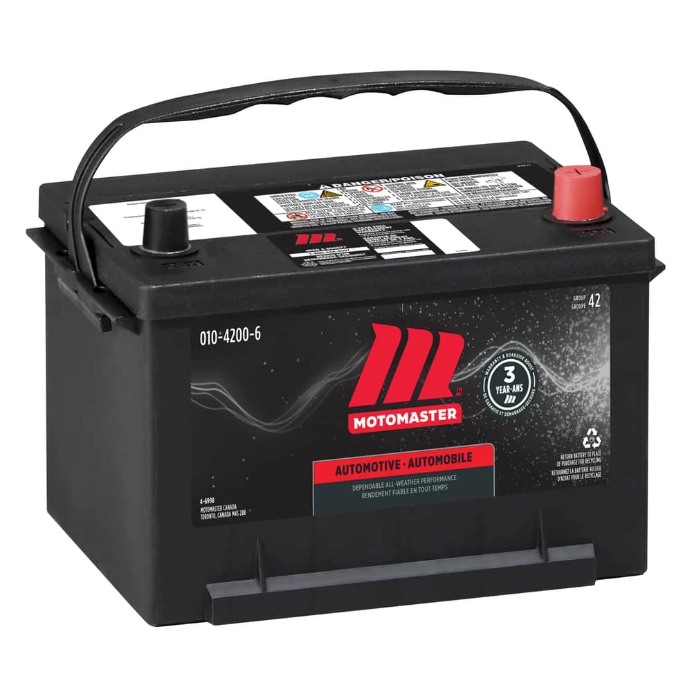 - MOTOMASTER Automotive Batteries provide dependable performance and reliability