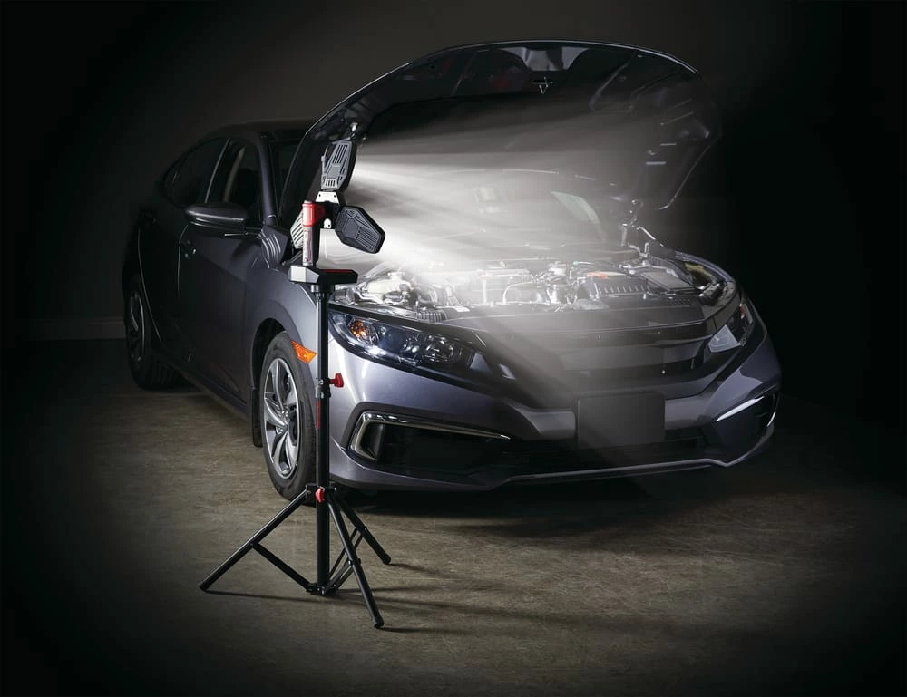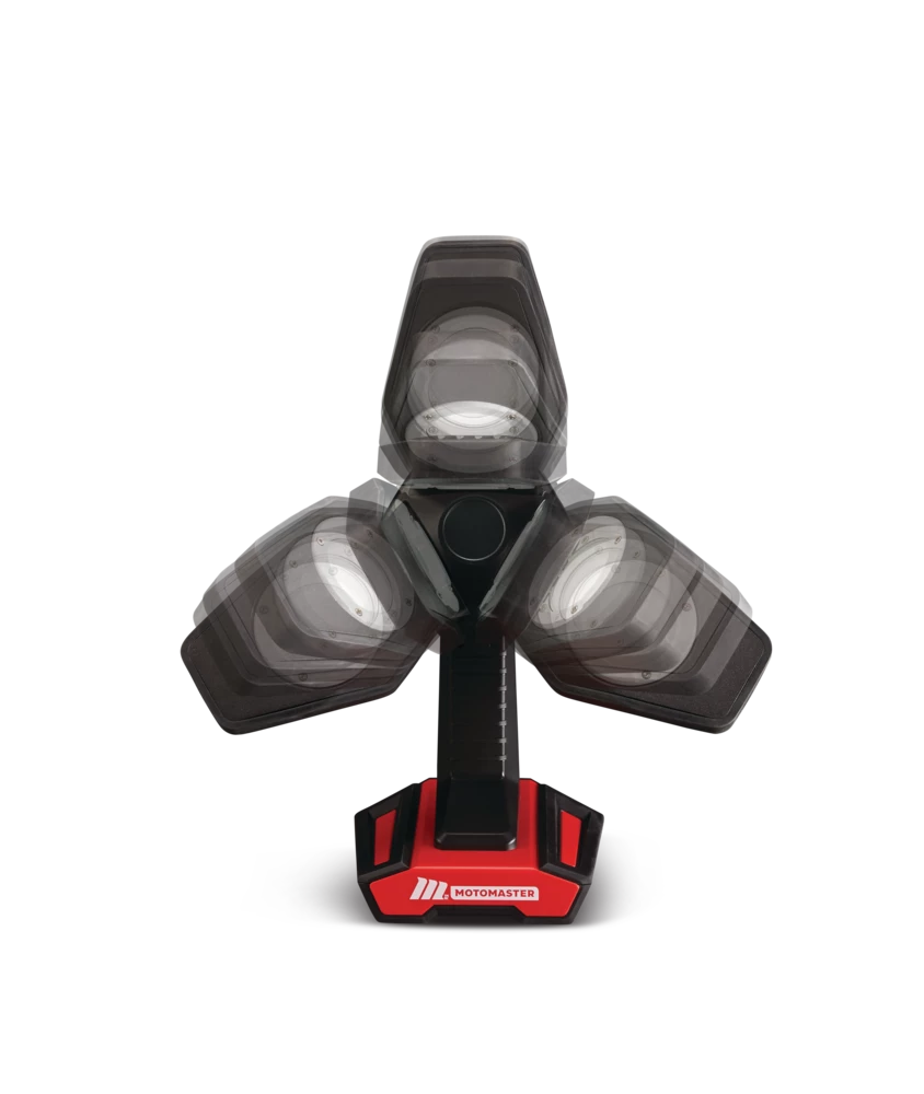 - Light up your workspace with the MotoMaster Heavy-Duty Tripod 2200 Lumen 3-Blade Work Light