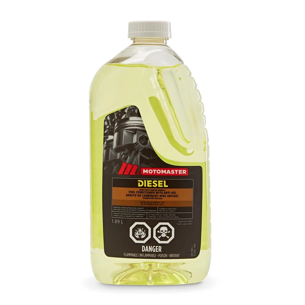 - MotoMaster Diesel Heavy-Duty Fuel Conditioner with Anti-Gel enhances cold temperature engine performance