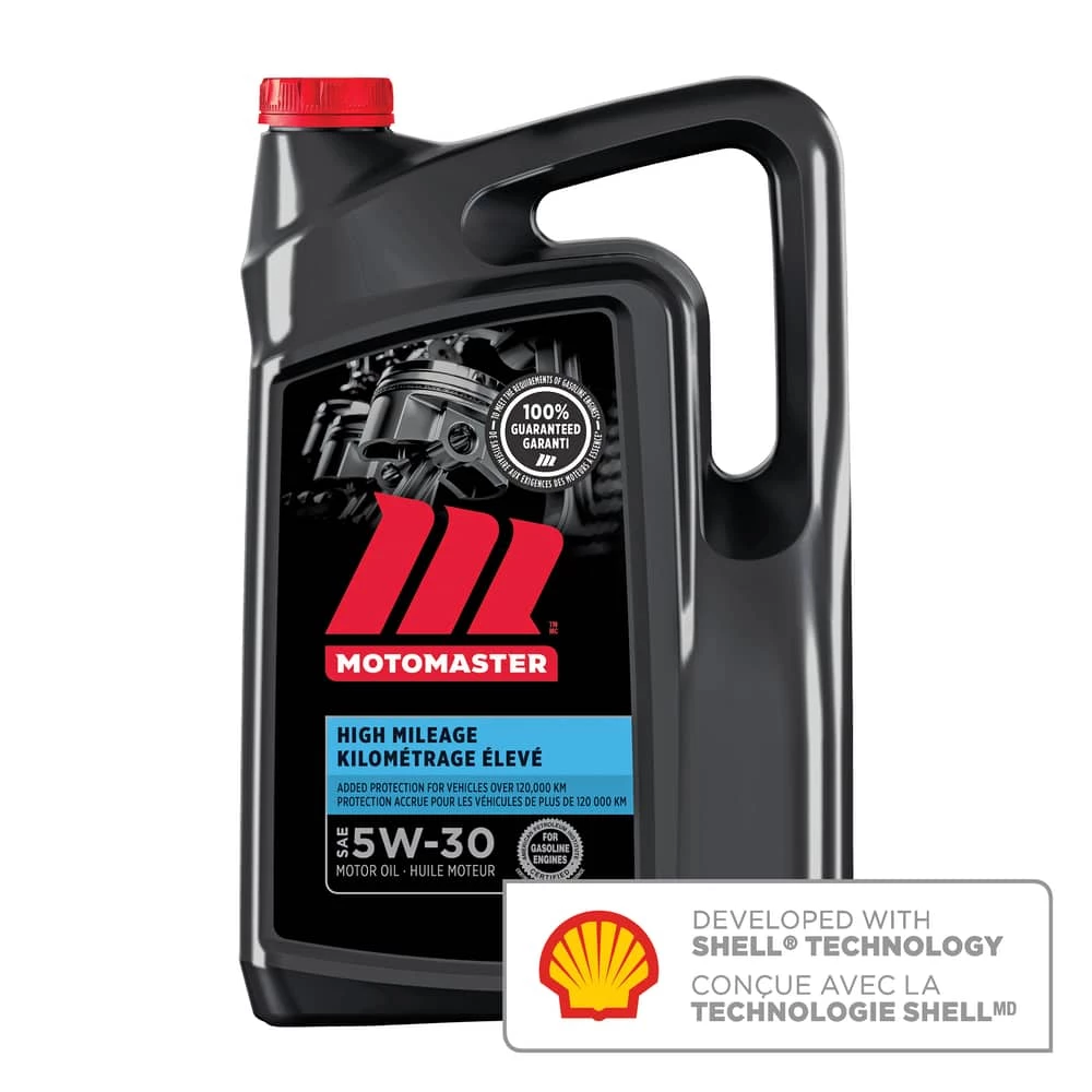 MotoMaster High Mileage Engine Oil developed with Shell technology is specifically formulated for vehicles with over 120,000 km.