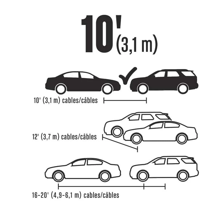 - 10′ (3.1 m) length is ideal for front-to-front vehicle connections
