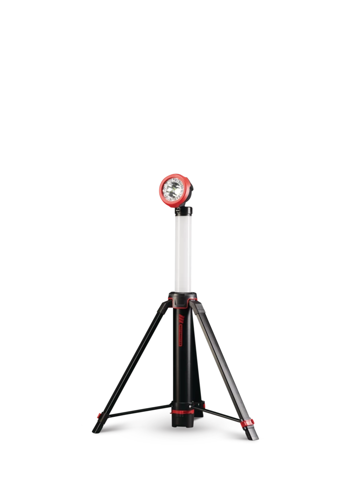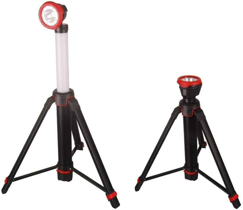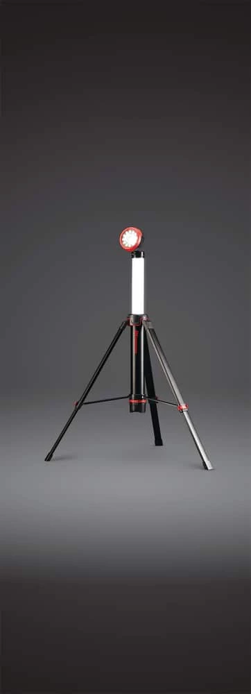- Features a 1600 lumen floodlight and 600 lumen torch