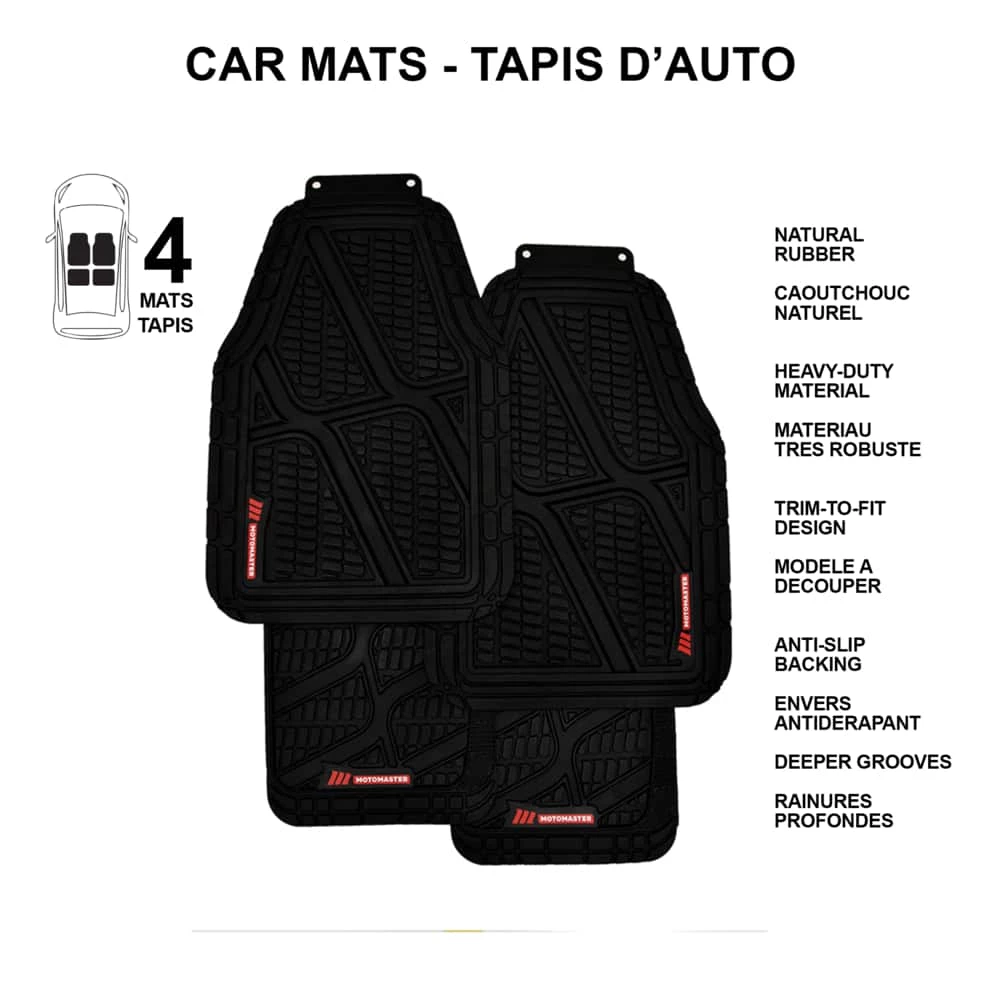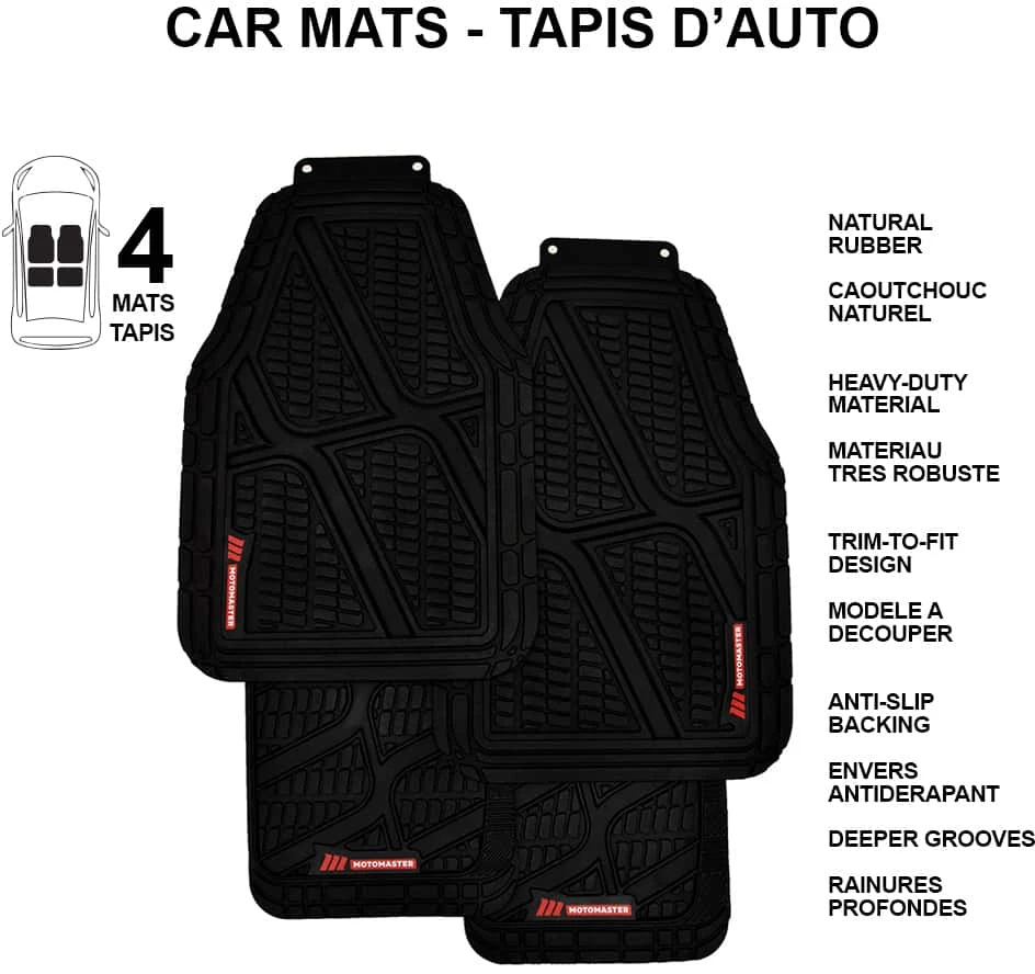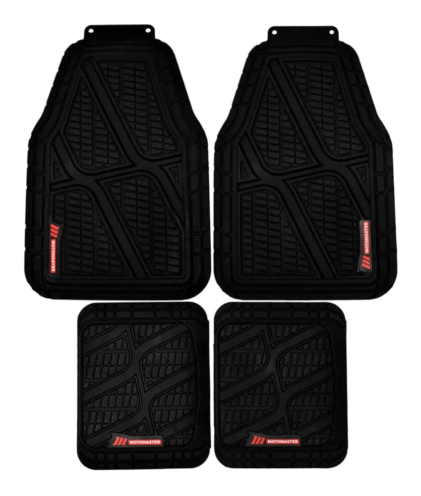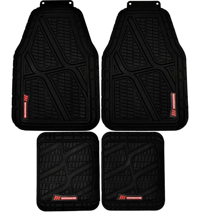 - Protect the interior of your vehicle with the MotoMaster Natural Rubber Small Tread Car Floor Mat Set