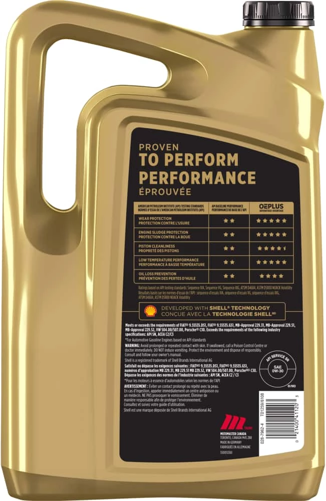 MotoMaster OEPlus European Engine Premium Synthetic Engine Oil developed with Shell Technology is a premium new formulation that is engineered to provide complete engine protection and piston cleanliness, outperform the latest API specifications by delivering superior protection in all weather conditions in most European vehicles