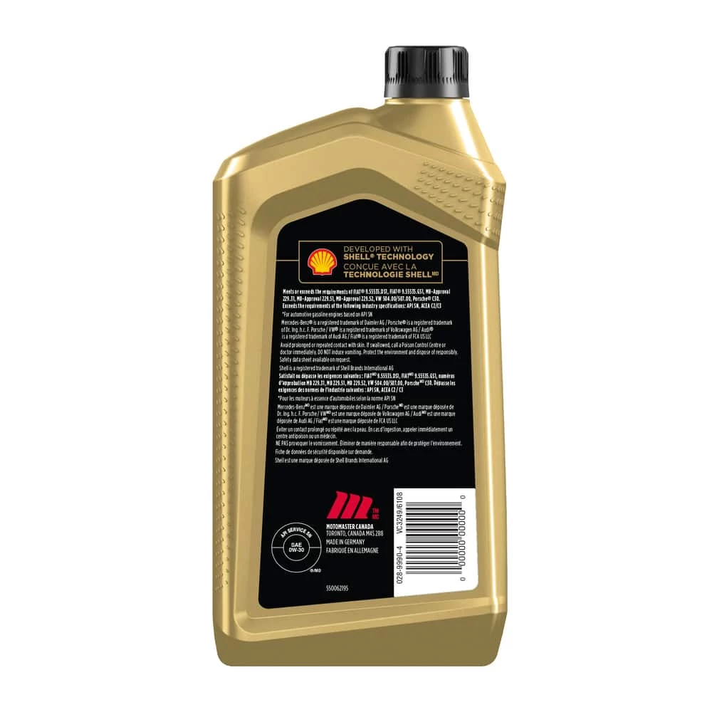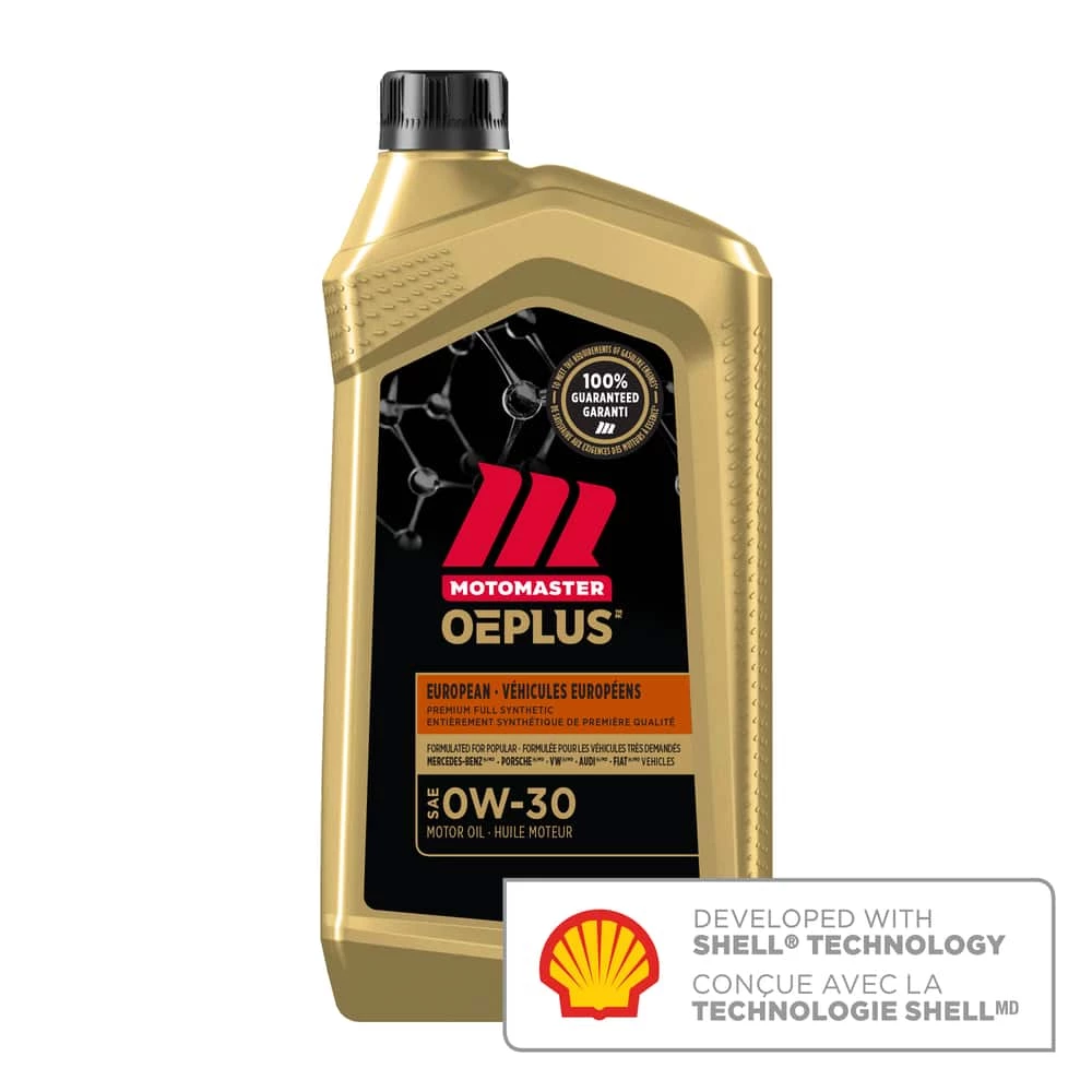 - MotoMaster OEPLUS European 0W30 Premium Full Synthetic Engine Oil fights against deposits to allow your engine to operate at maximum horsepower