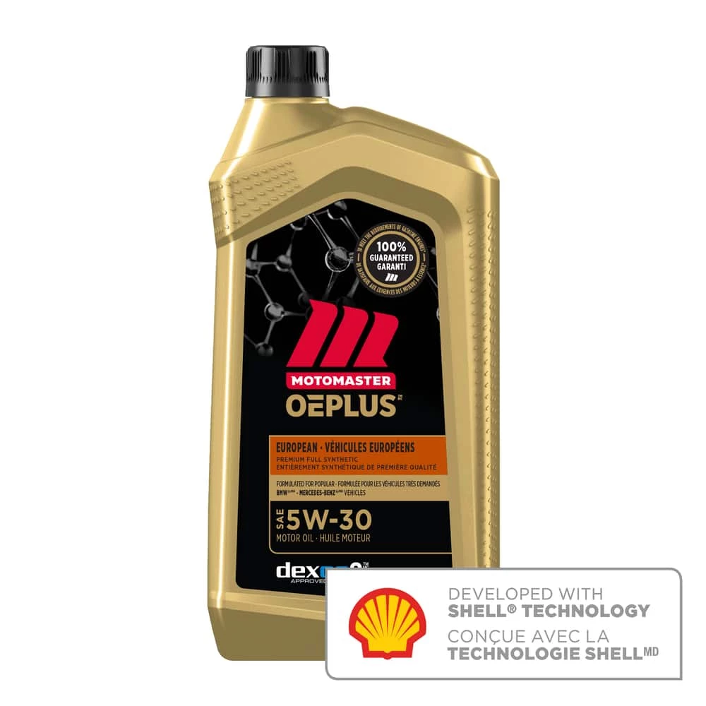- MotoMaster OEPLUS European 5W30 Premium Full Synthetic Engine Oil fights against deposits to allow your engine to operate at maximum horsepower