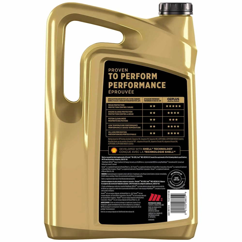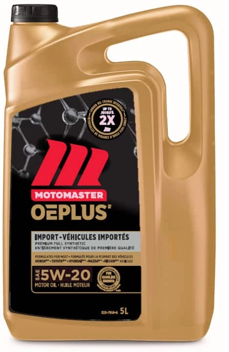 - MotoMaster OEPLUS Import 5W20 Premium Synthetic Engine Oil fights against deposits to allow your engine to operate at maximum horsepower