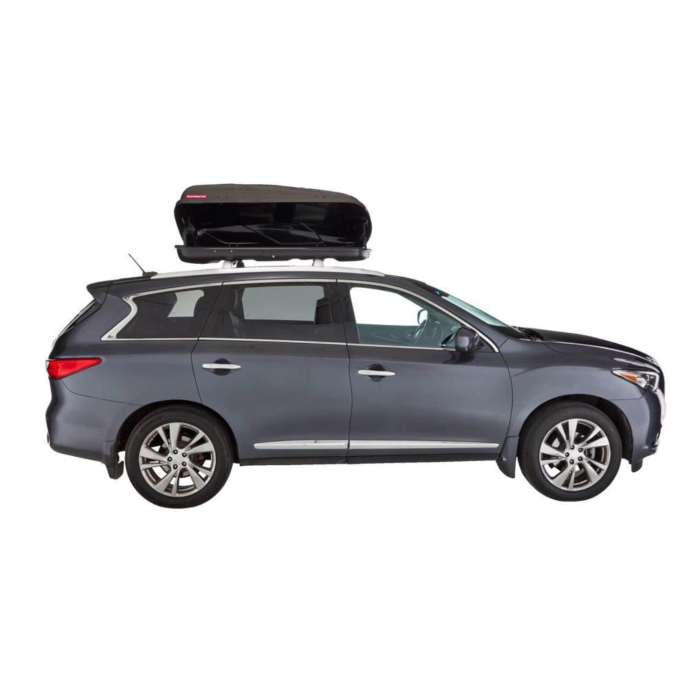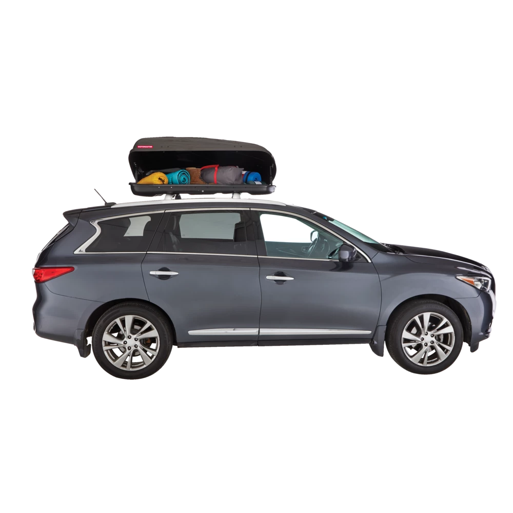 - MotoMaster Rooftop Cargo Carrier features a dual-sided opening for easy loading and unloading