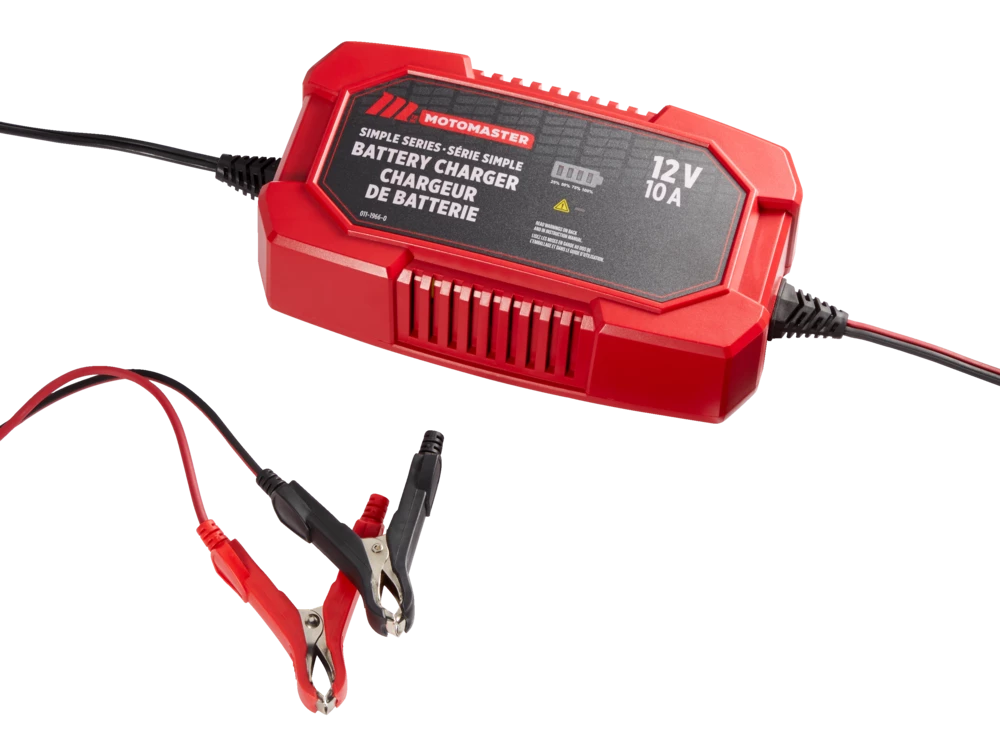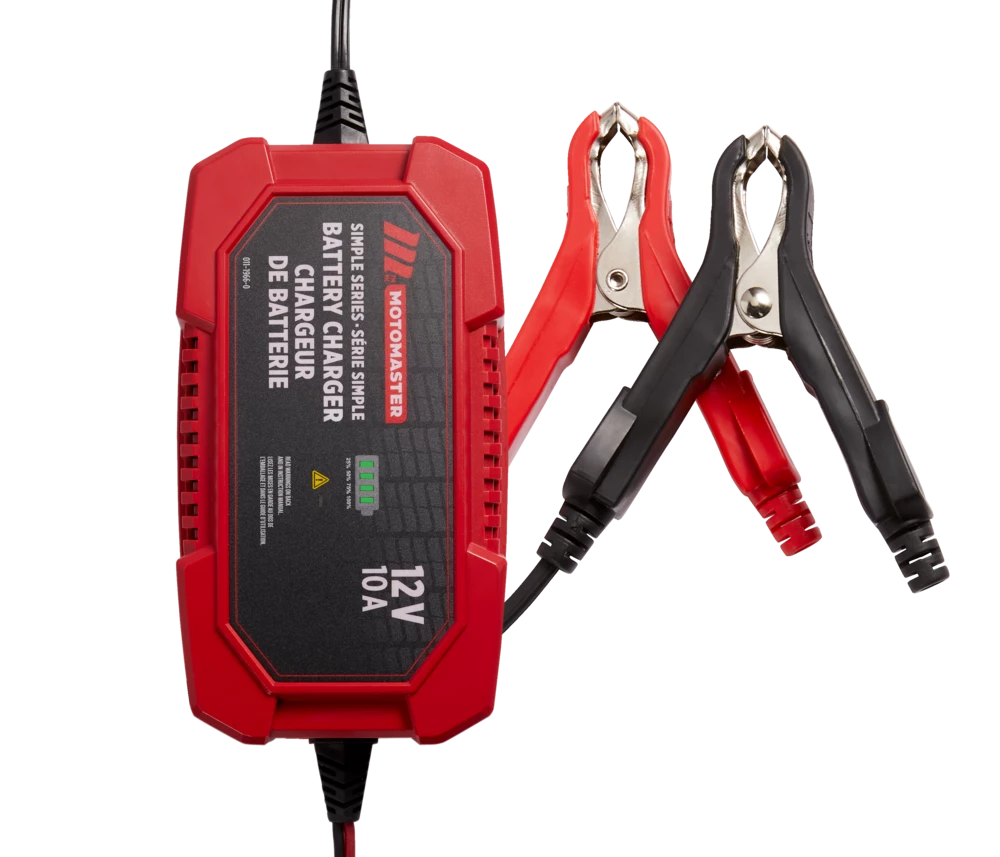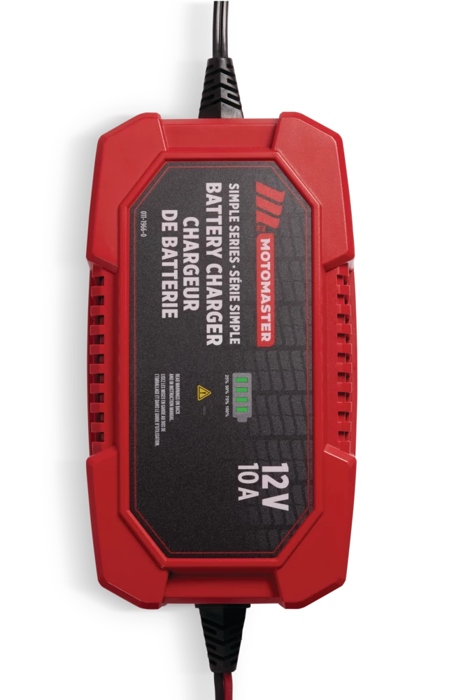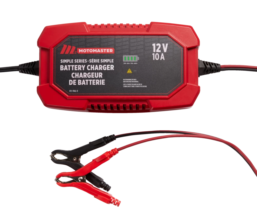 - MotoMaster Simple Series 10A Battery Charger and Maintainer makes battery charging and maintaining simple