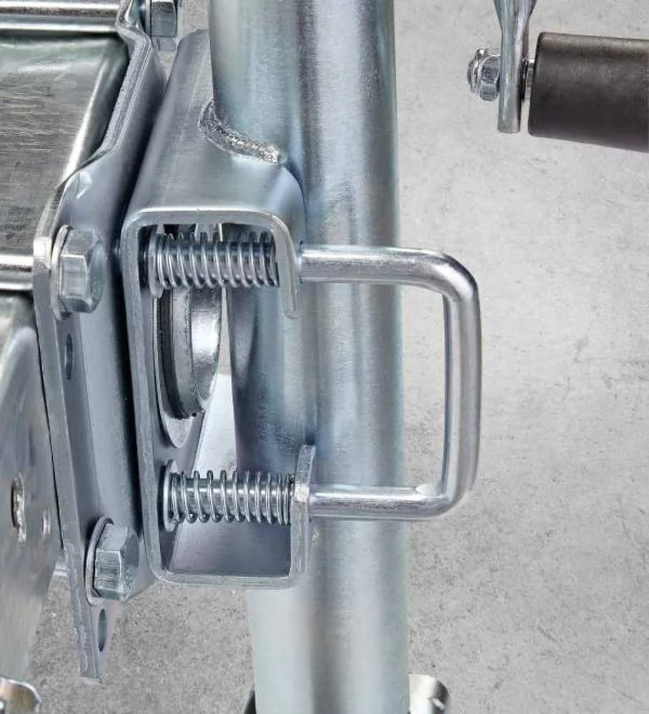 - Folds up while traveling and locks in place with double spring-loaded lock pin for increased durability